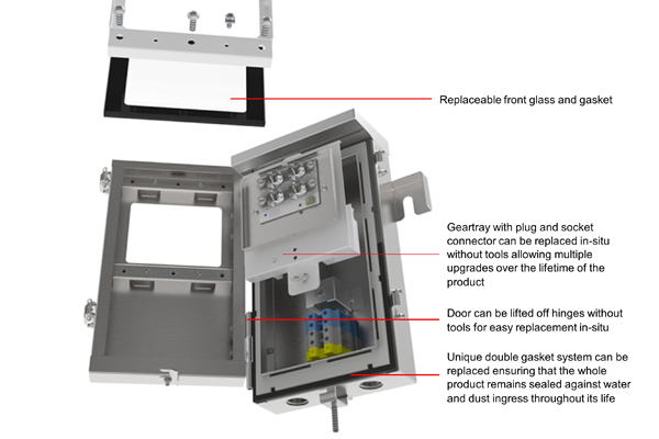 The geartrays allow upgrades at any time. They use plug‑and‑socket connectors and need no tools. Because of this, we believe Centinox is Designplan’s first product with a 100‑year life. It is a true 100‑year design life luminaire.