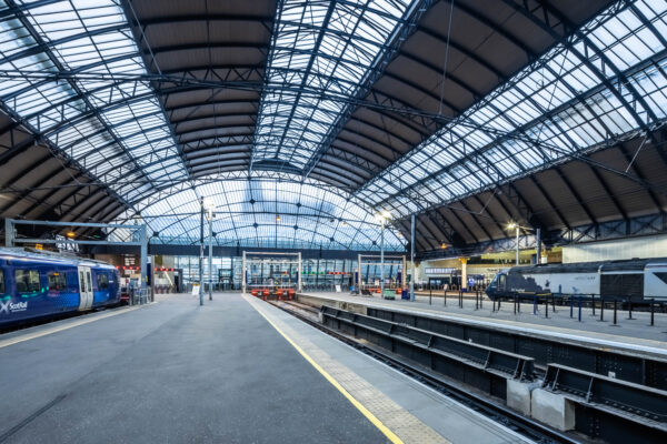 When lighting a covered platform we would recommend 30 -100 lux average on the platform surface with a uniformity of 0.4 as per DFT Design Standards for Accessible Railway Stations. The illuminance range is dependent on usage and accessibility of the platform as per BS EN 12464-2. The platform edge requires a 20 lux minimum with 0.4 uniformity, which is in line with RIS-7702- INS standards. Where CCTV is used the design of the scheme and positioning of fittings must avoid conflict.