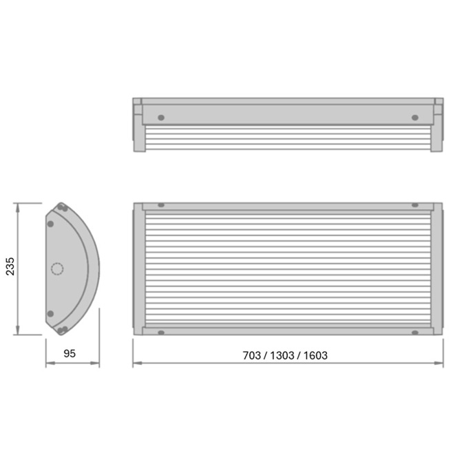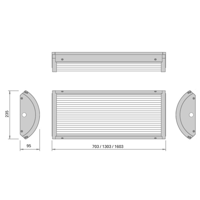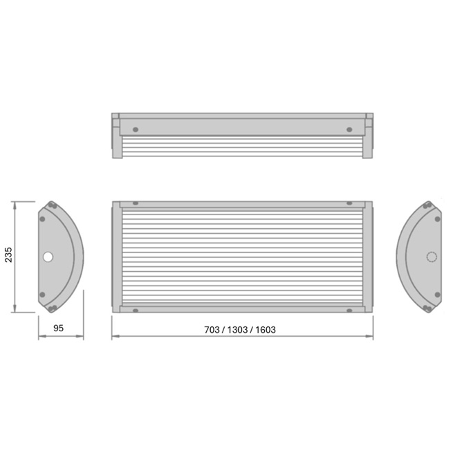 Housing: Extruded aluminium body with die cast aluminium end caps.