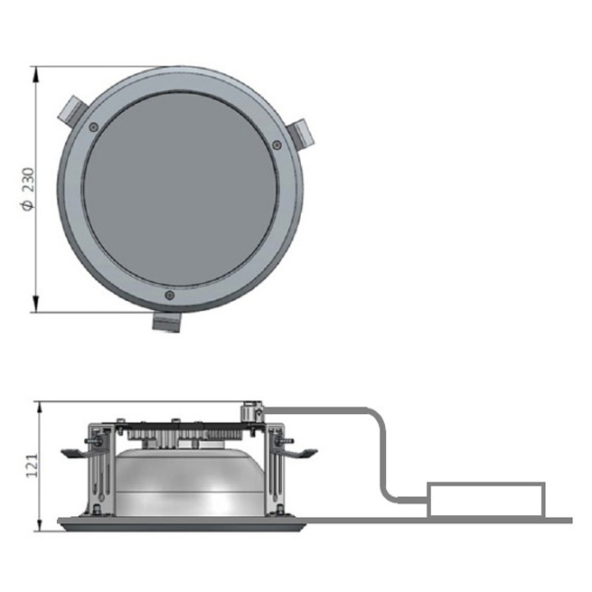 Housing: Zinc coated steel body with machined aluminium bezel ring.