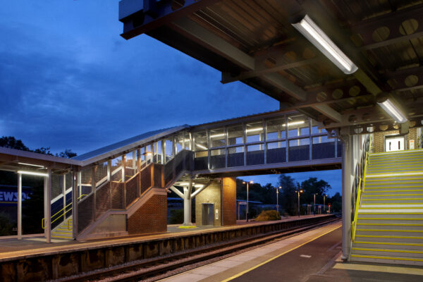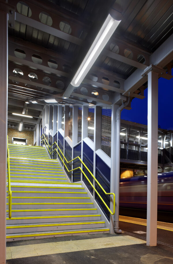 There are some differences in recommended levels across standards. EN12464-2:2014 calls for 50 or 100 lux in outdoor applications dependant on passenger numbers. Whilst the Rail Industry Standard calls for 100 lux on footbridges and 150 lux on stairs.