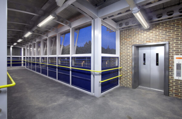 Lighting from each side can give sufficient directional quality of light. Equal highlighting of horizontal treads and vertical risers on the stairs is important whilst maintaining the natural lit contrast between the two. Luminaires mounted at low level can minimise troubling glare. Care should also be taken to minimise glare to train drivers and dispatchers.